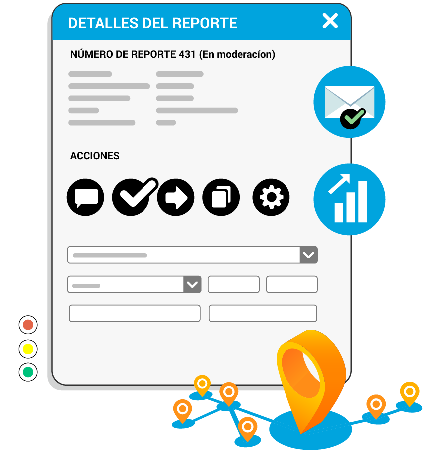 Permite gestionar los problemas o situaciones de cualquier área, ya sea de manera interna o abriendo un canal externo de comunicación con la ciudadanía. Las Solicitudes Georreferenciadas ubican en tiempo y espacio las necesidades de gestión de un sector específico. A su vez, describen la situación y brindan la posibilidad de generar acciones directas -órdenes de trabajo- que permiten hacer un seguimiento minucioso del proceso desde su nacimiento hasta la finalización -notificaciones-.