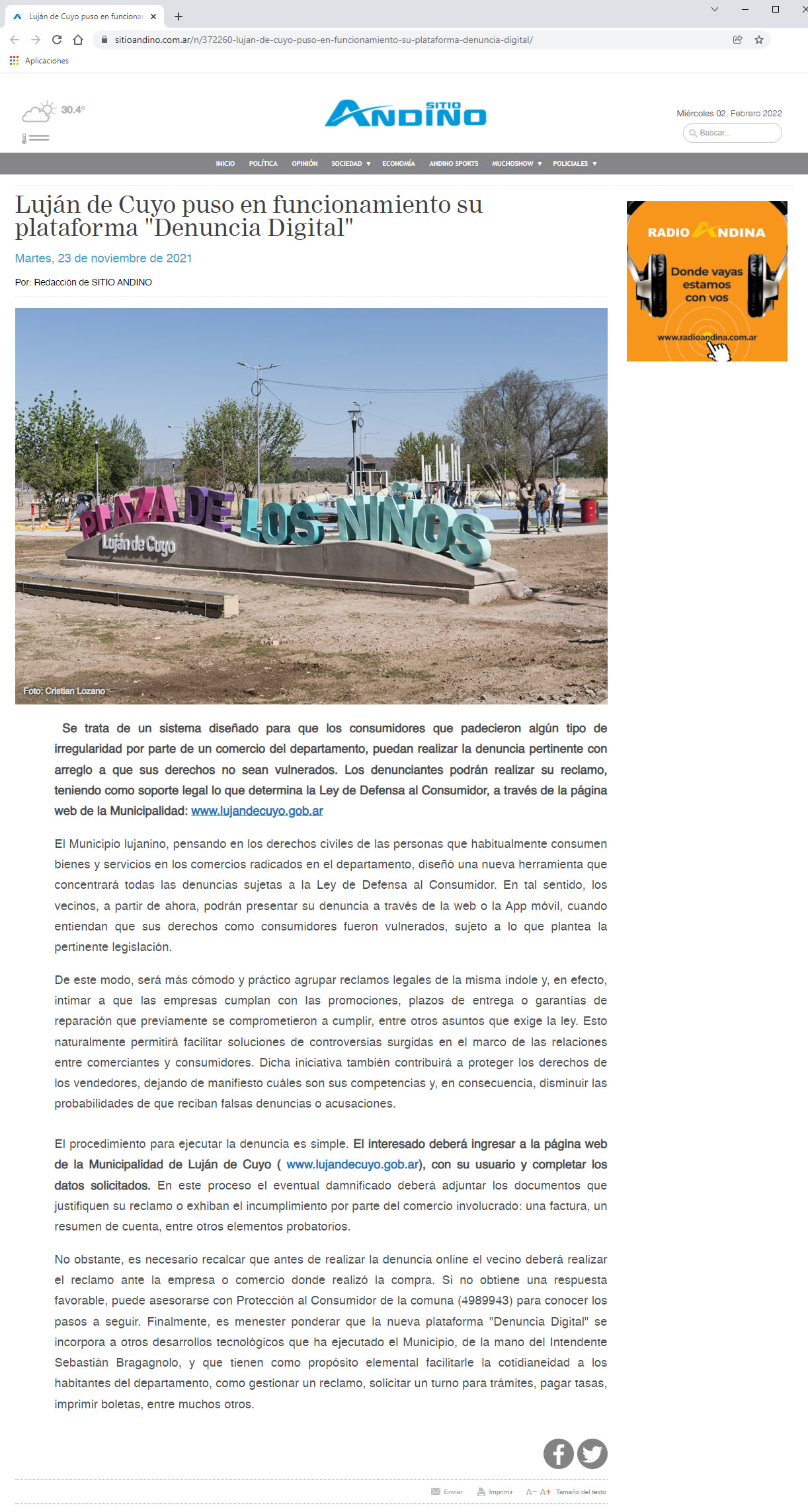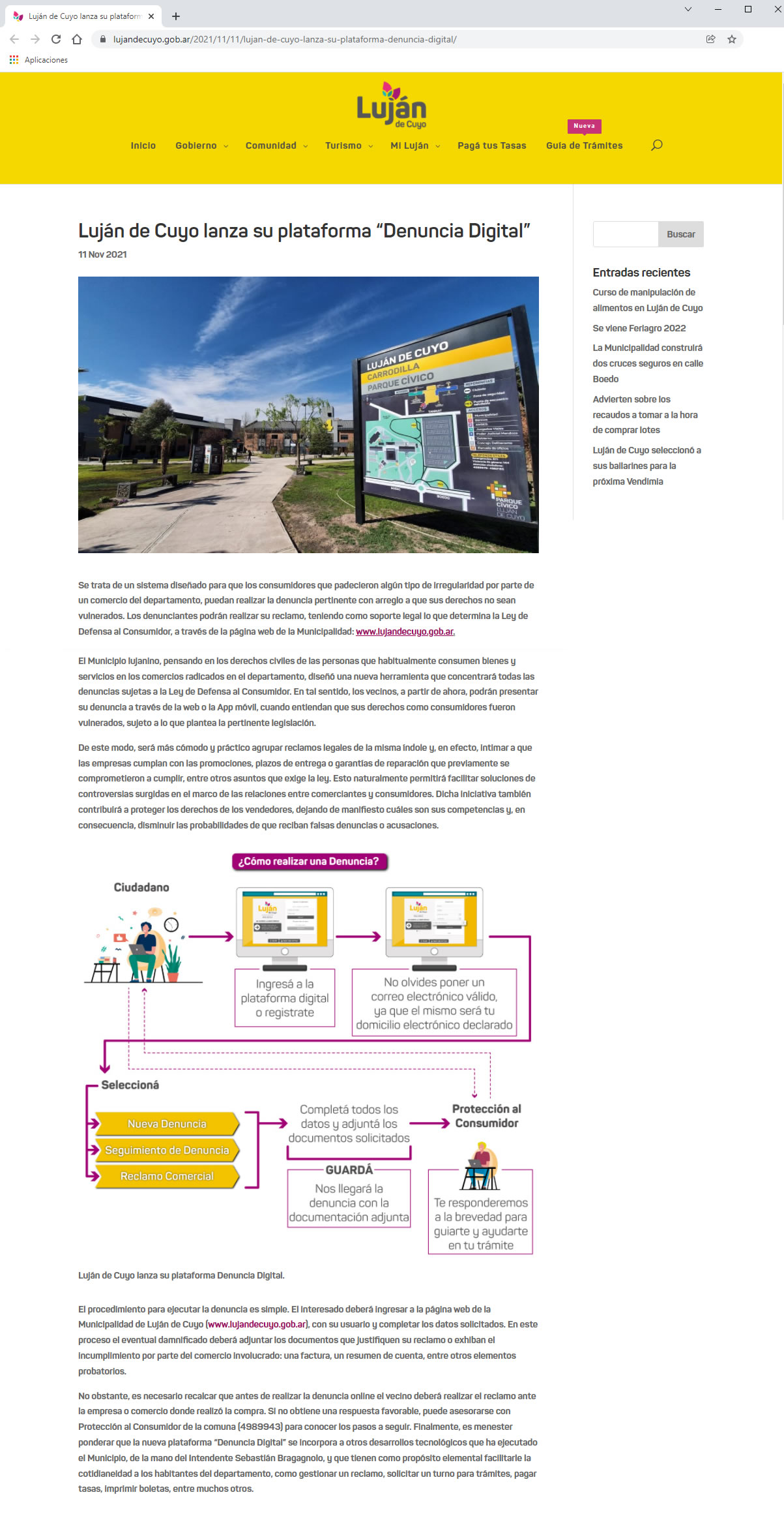 En esta Municipalidad Mendocina, implementamos multiples servicios, entre ellos, una plataforma web y Aplicaciones, para gestión de solicitudes georreferenciadas, turnos programados, trámites y denuncias on line, que pone el municipio totalmente a disposición de los ciudadanos. Acceso a servicios, canales de comunicación y la posibilidad de ser ejecutores de las propias soluciones le dan un protagonismo a los vecinos como verdaderos co-gobernantes.