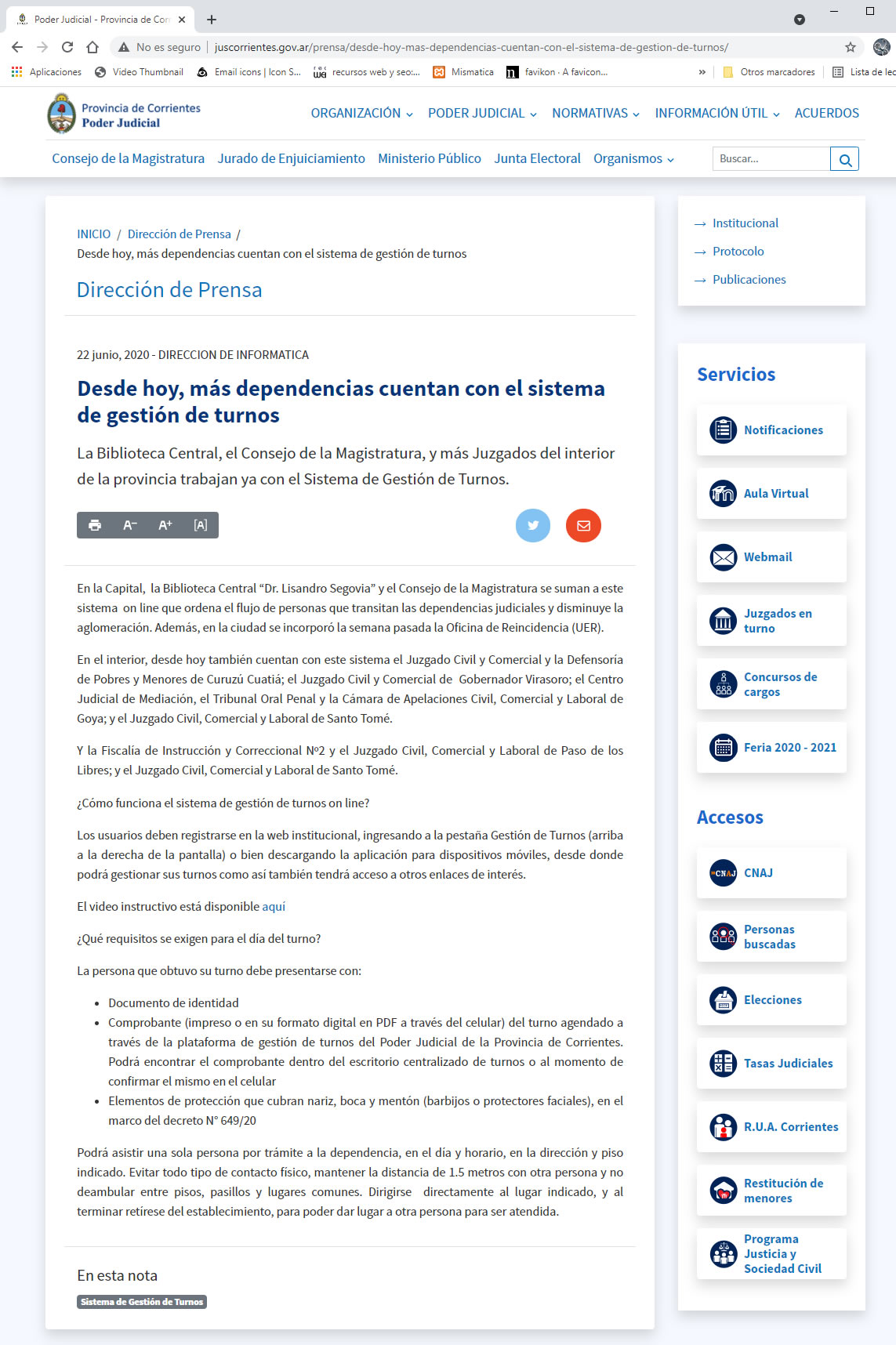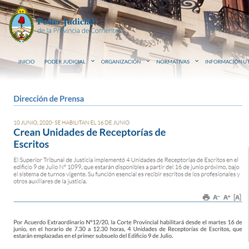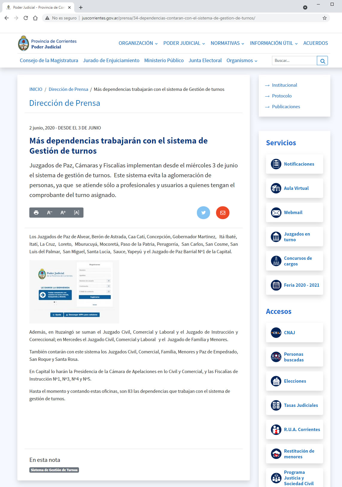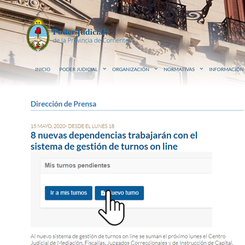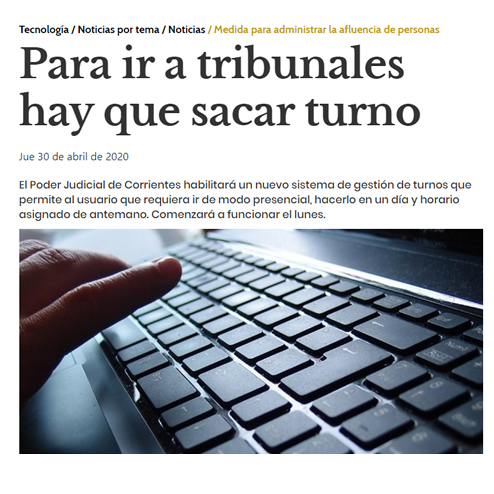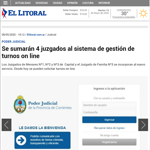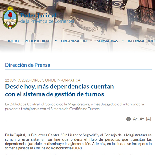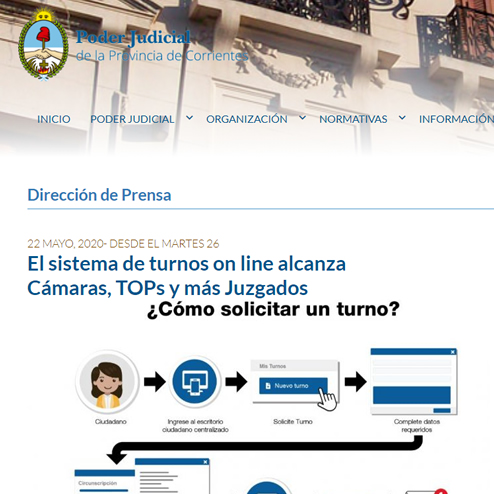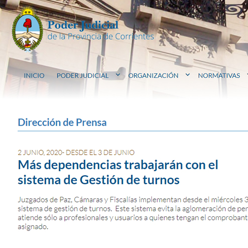 A poco más de un mes del comienzo de la cuarentena estricta por el Covid 19 (el 30 de abril de 2020) el Poder Judicial de la Provincia de Corrientes comenzó a atender de manera presencial a sus ciudadanos y profesionales. Fue gracias a la implementación de “Citymis Turnos Programados” y “Citymis Audiencias Programadas” con las cuales se estableció el control de ingresos en sus más de 260 dependencias en toda la provincia mesopotámica.