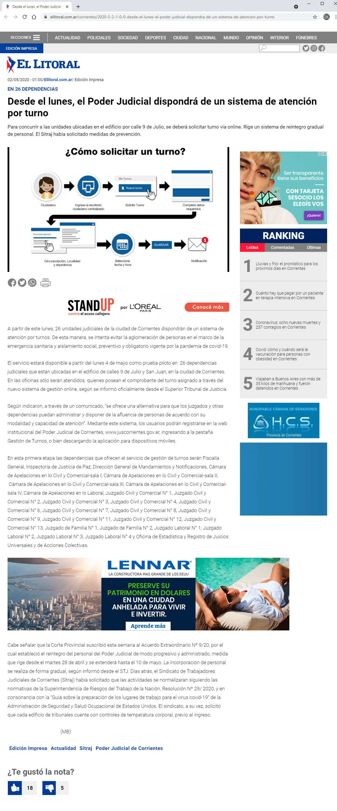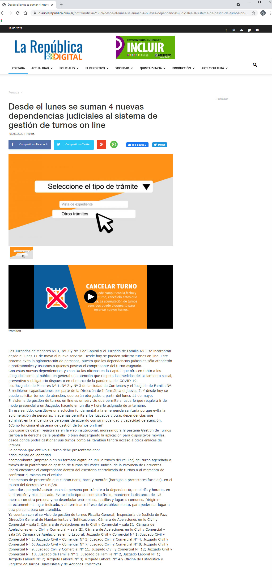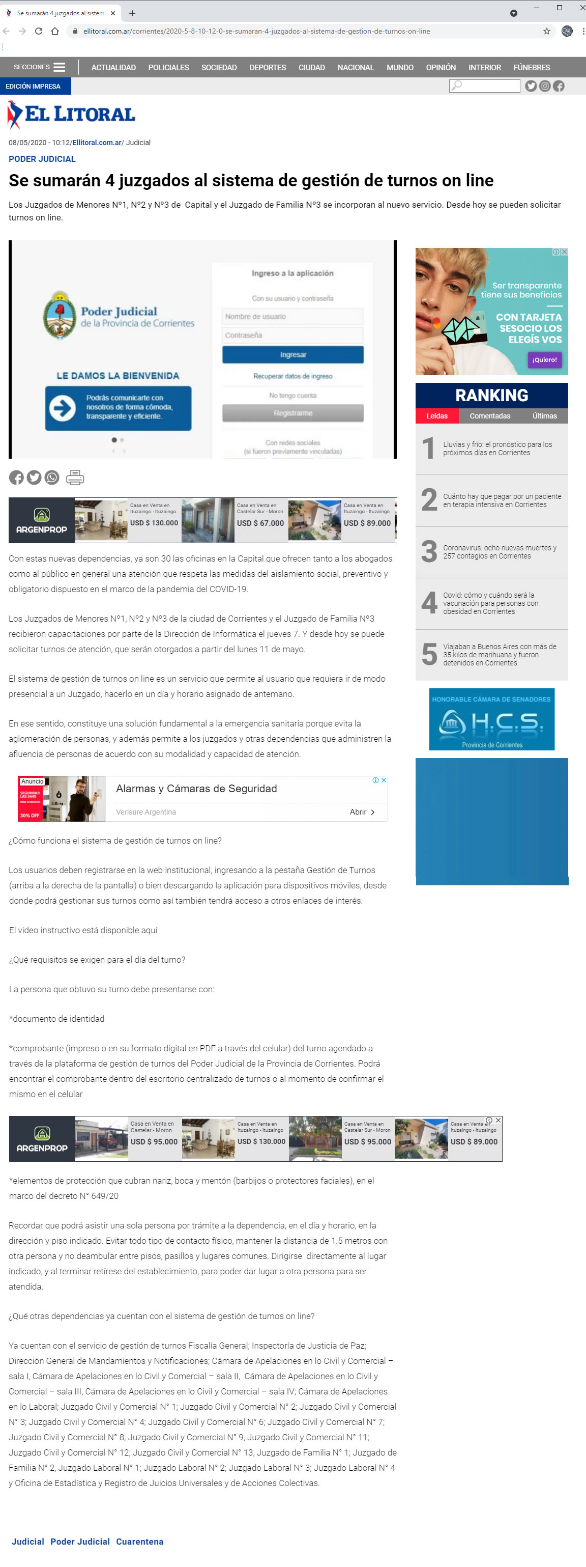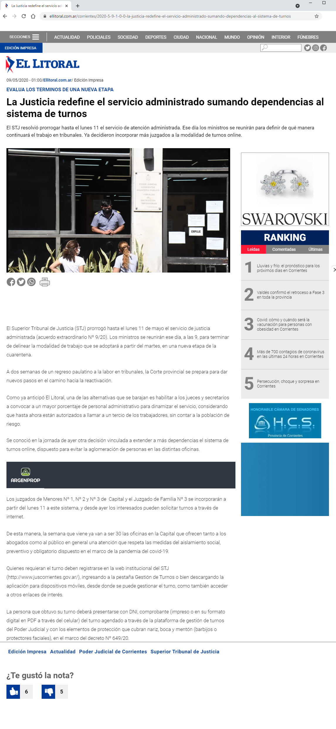 A poco más de un mes del comienzo de la cuarentena estricta por el Covid 19 (el 30 de abril de 2020) el Poder Judicial de la Provincia de Corrientes comenzó a atender de manera presencial a sus ciudadanos y profesionales. Fue gracias a la implementación de “Citymis Turnos Programados” y “Citymis Audiencias Programadas” con las cuales se estableció el control de ingresos en sus más de 260 dependencias en toda la provincia mesopotámica.