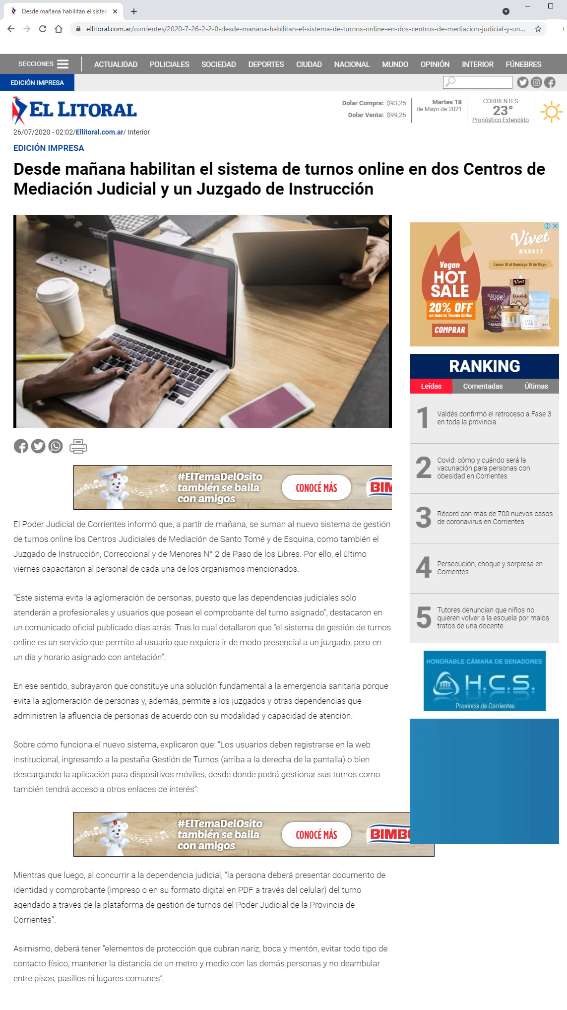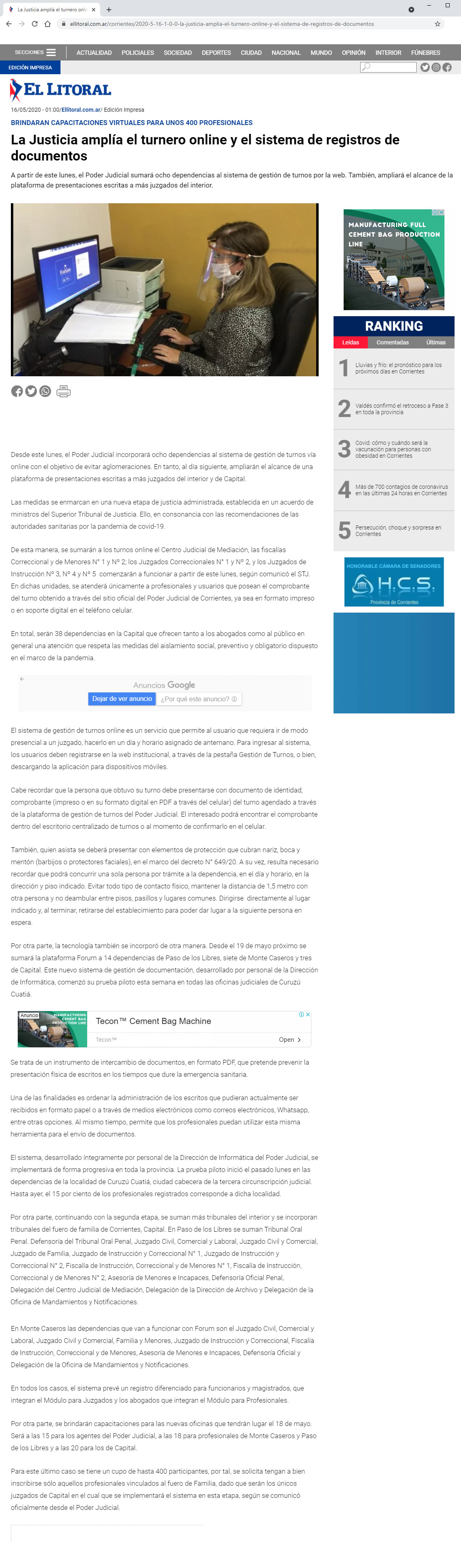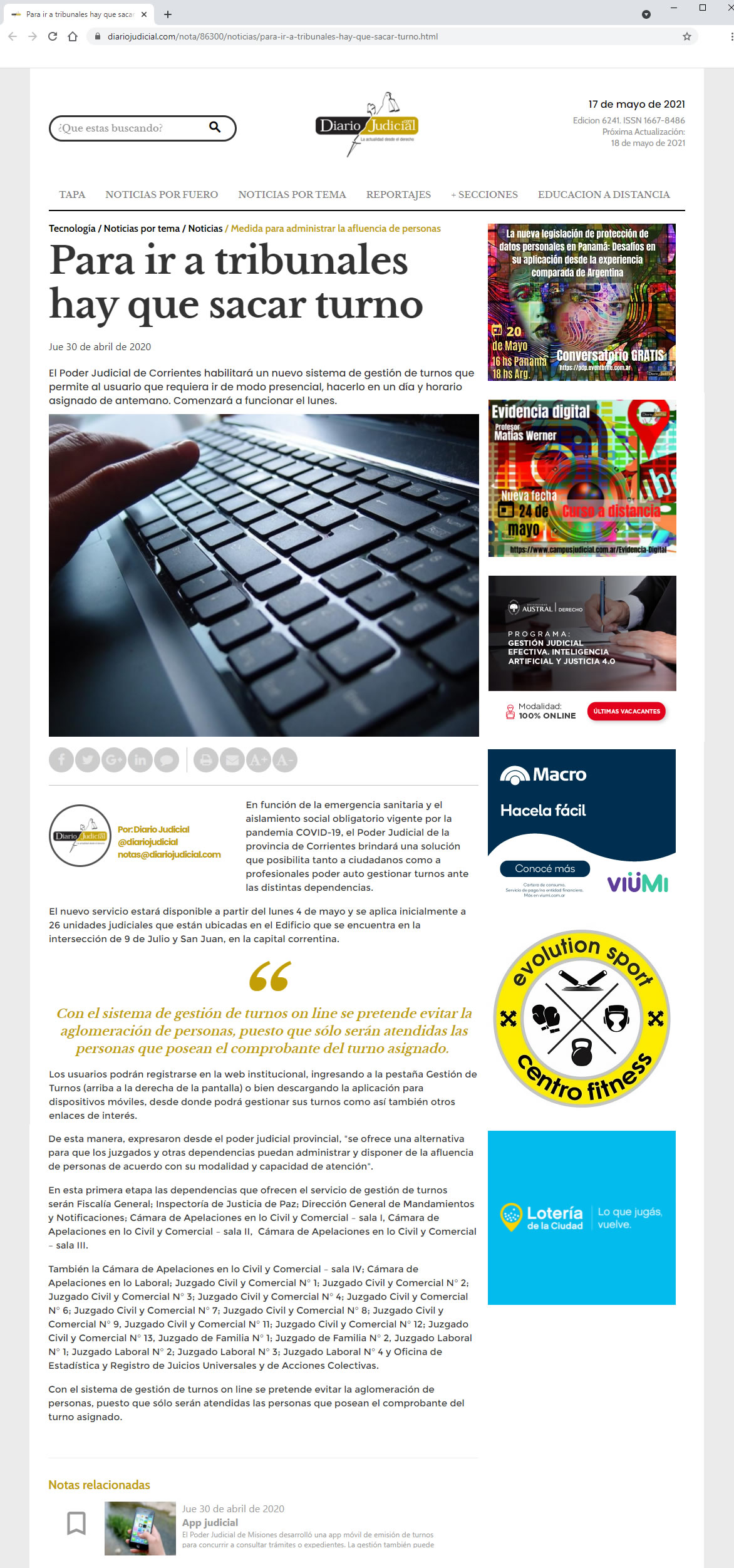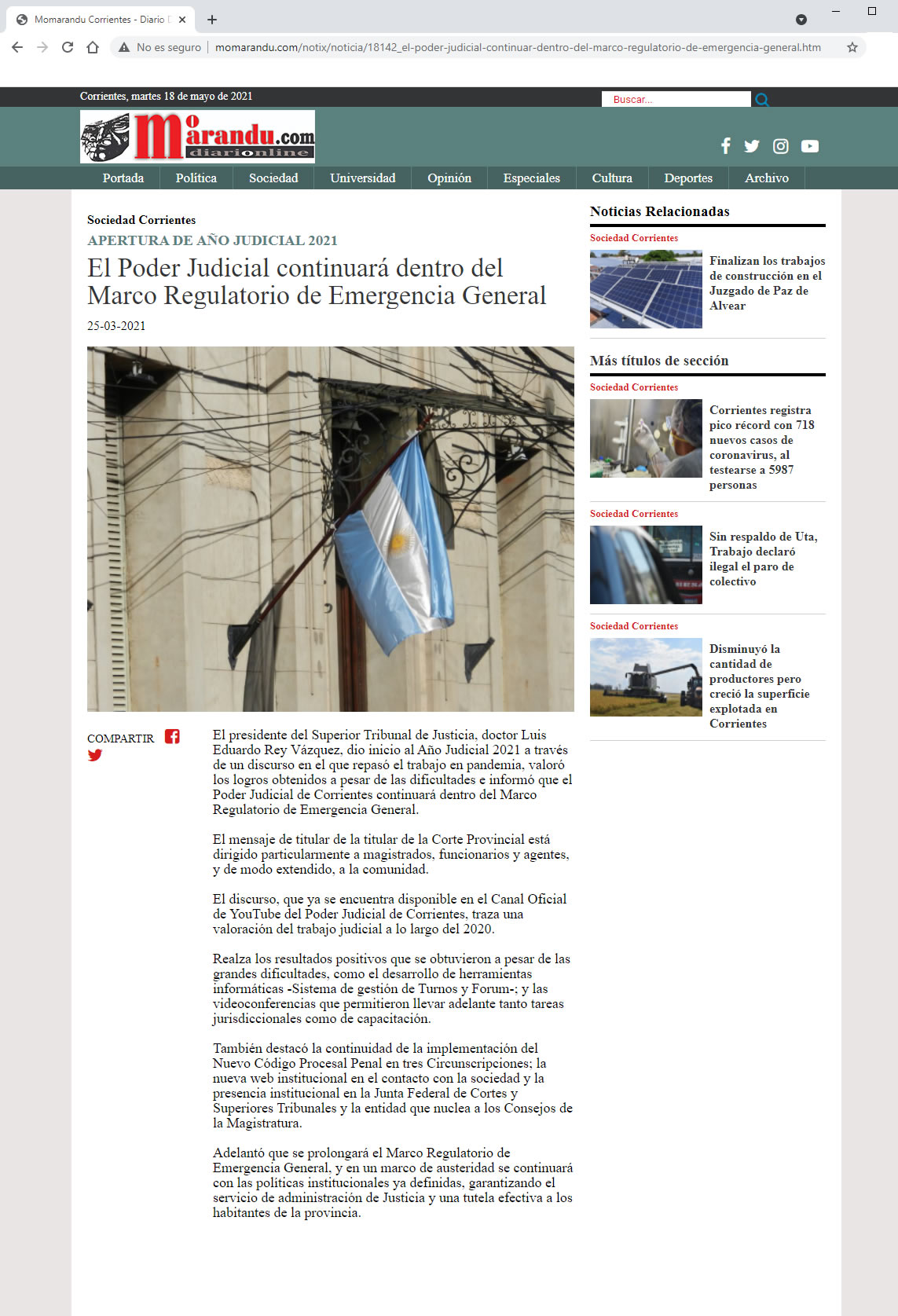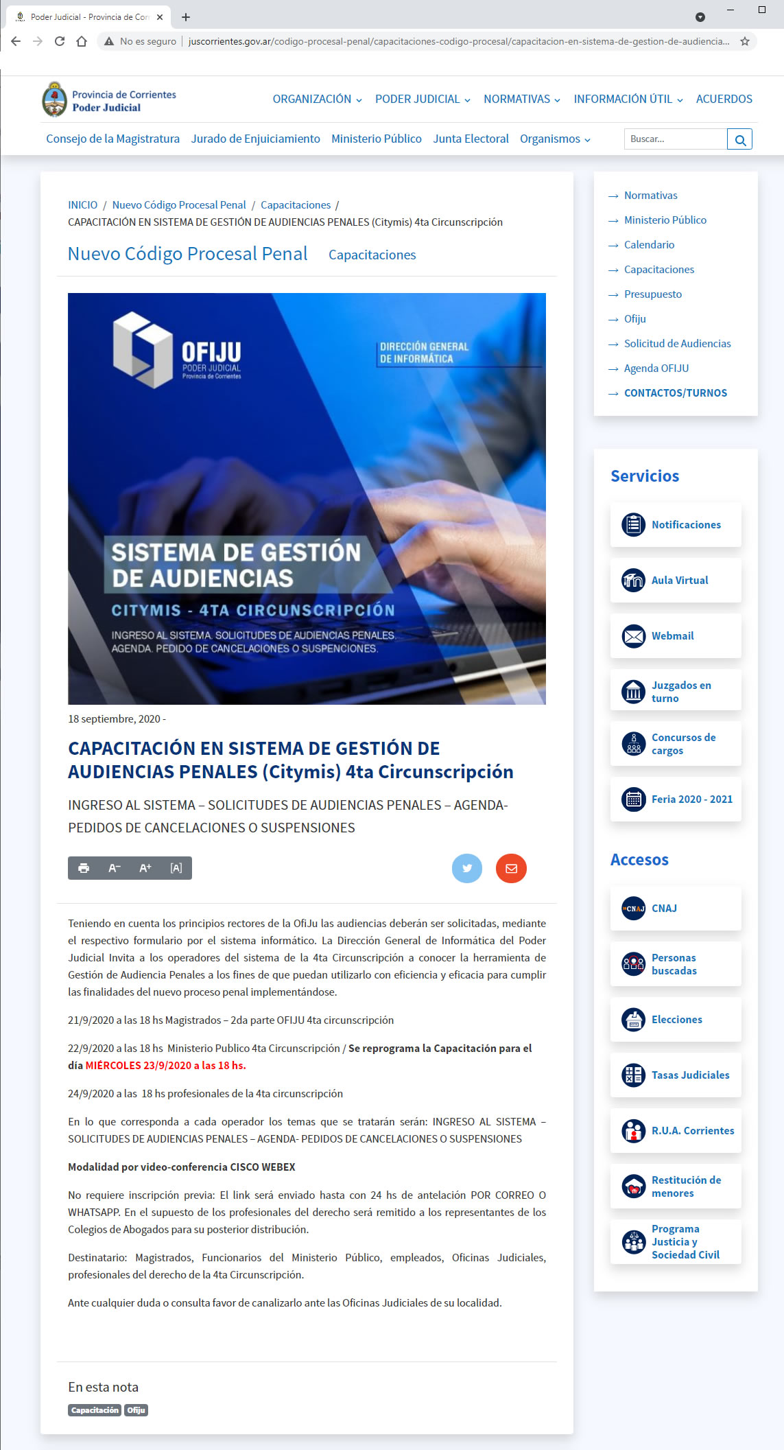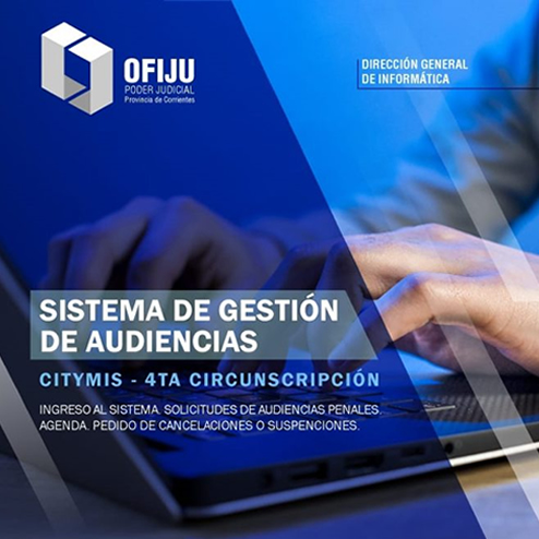 En septiembre del 2020 el Poder Judicial de Corrientes decidió ampliar el alcance de las soluciones tecnológicas que le brinda Mismatica y se implementó la aplicación de gestión de las audiencias penales. Este desarrollo permitió administrar de forma digital la totalidad del sistema dando un notorio salto de eficiencia y calidad que permitió cumplir con las finalidades del nuevo código procesal penal Provincial.