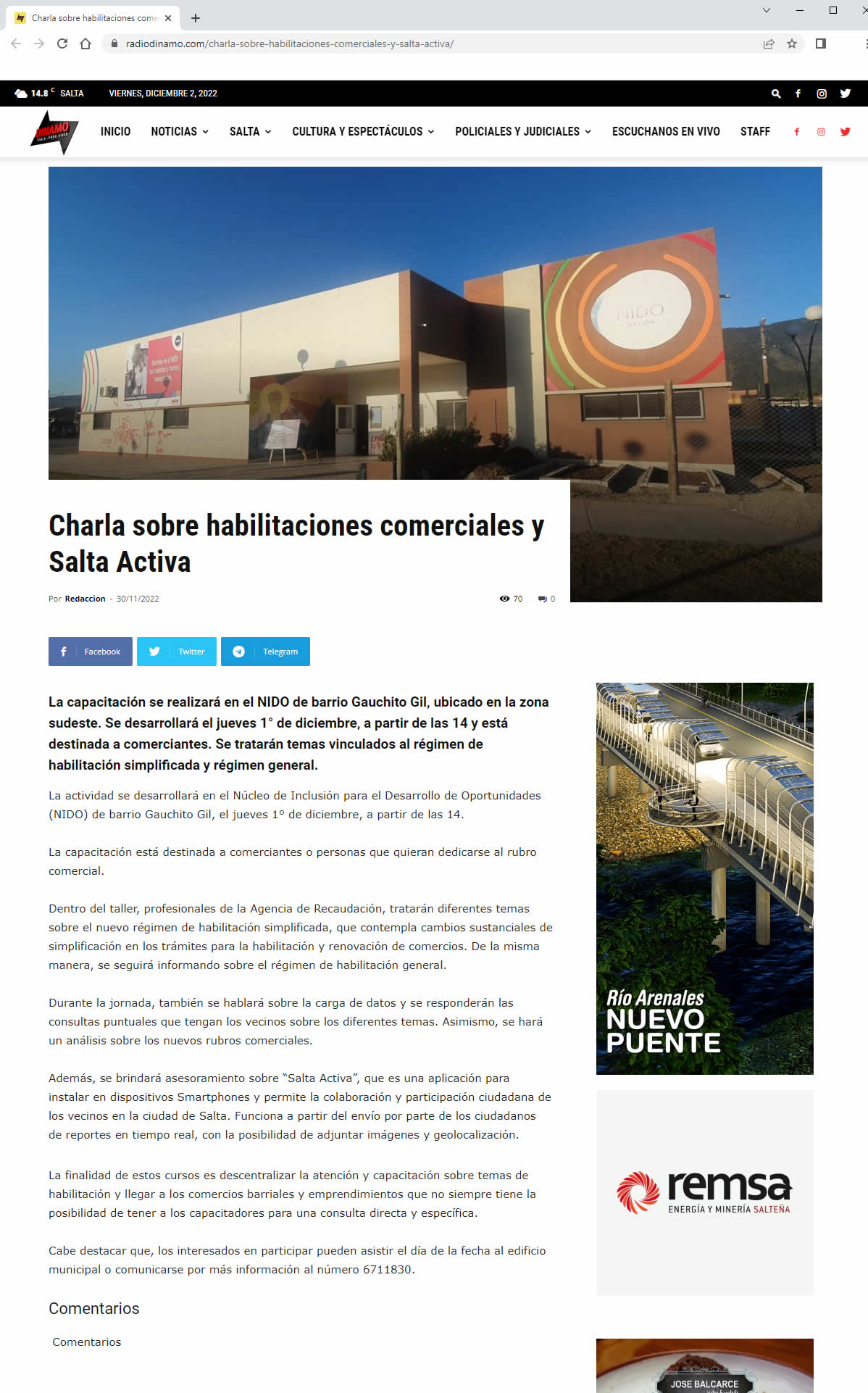 Los vecinos pueden solicitar una mediación comunitaria o consultar expedientes de trámites ya iniciados. El proceso esta pensando para cubrir todo el territorio de la Provincia con la conexión entre sí de todos los centros de mediación. VER + | Habilitaciones Comerciales