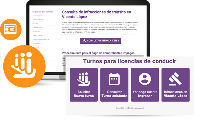 Desarrollamos en este importante Municipio del AMBA, multiples aplicaciones, entre ellas, las de turnos programados online, tanto para los 28 centros de salud Municipales (ordenados por especialistas), como para licencias de conducir y otros trámites. Asimismo gestionamos digitalmente todo el ciclo completo de las infracciones viales y comerciales (presunción, digitalización, juzgamiento y cobro online), así como posterior juzgamiento de las actas y causas en los Juzgados de faltas.