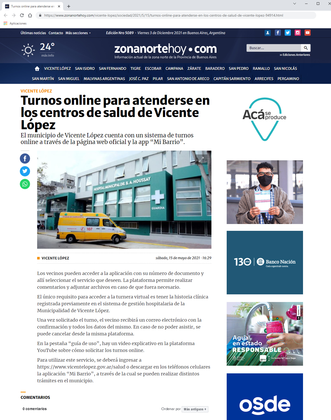 Vicente López es un municipio de casi 300 mil habitantes y se encuentra al norte de la Ciudad Autónoma de Buenos Aires. Por la magnitud de su población y por las características sociodemográficas tuvo que implementar un sistema de turnos on line para sus 28 centros de atención de la salud.