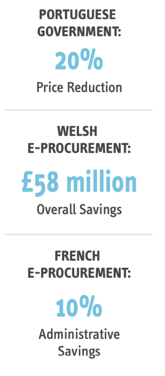 Estos ahorros no sólo corresponden a nuestro país según el reporte E-Procurement savings in Europe, de GateWit estos son mucho mayores como lo muestra la gráfica.